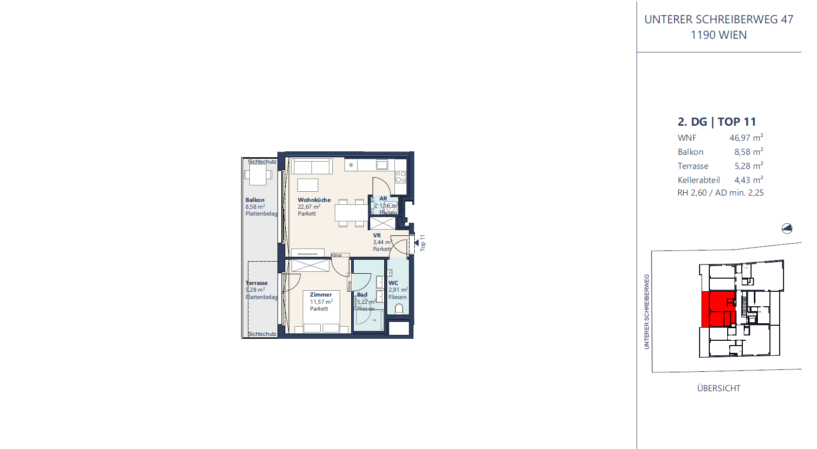 Ceiling height: 2.60 m (AD min. 2.25 m)