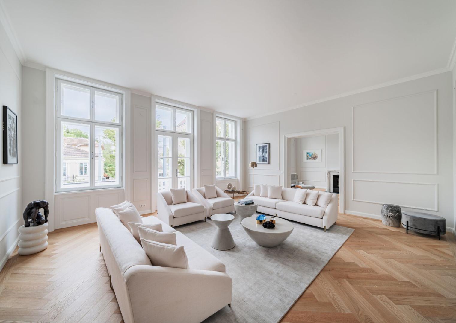 delicatessen, doctors, schools and offices, are within walking distance. Ideally located and yet completely private and not visible, by high ceilings, double doors and wide rooms particularly representative and at the same time so incredibly homely, this property offers the best of all worlds on a high standard of the highest quality of life unheard of in Vienna.