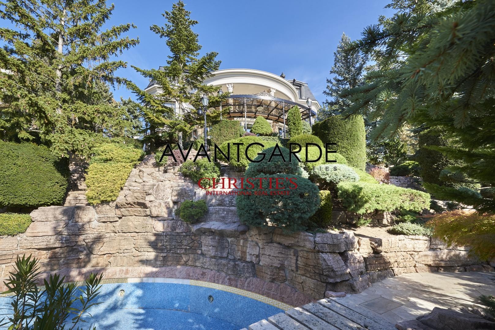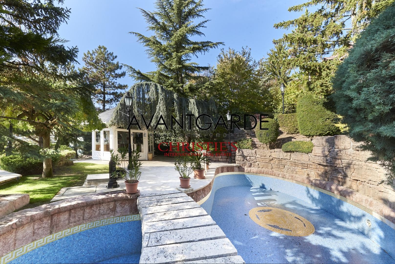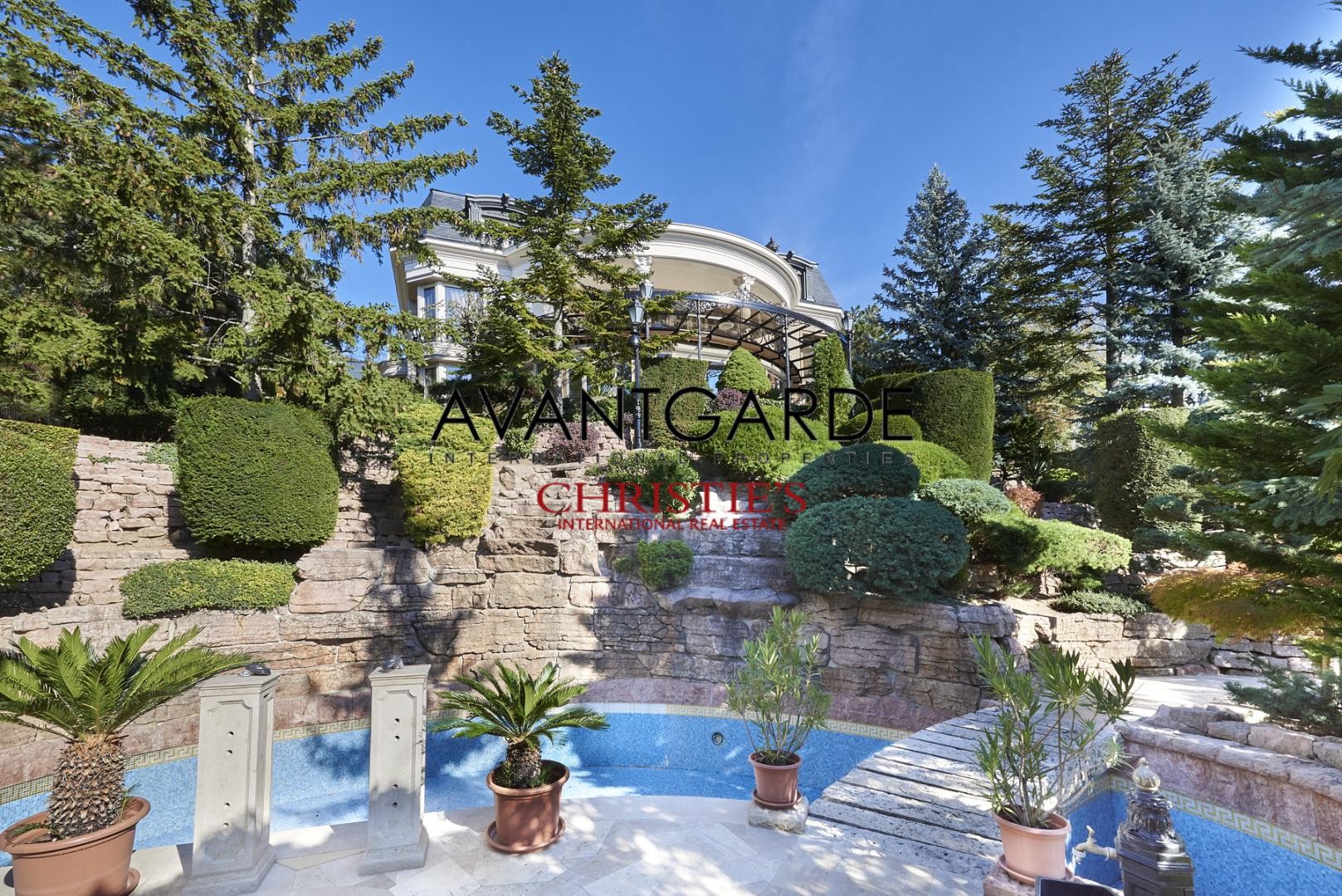 The botanical garden, designed by a landscape gardener, has an outdoor pool with hand-rolled and polished glass mosaic by Bisazza and a pool house.