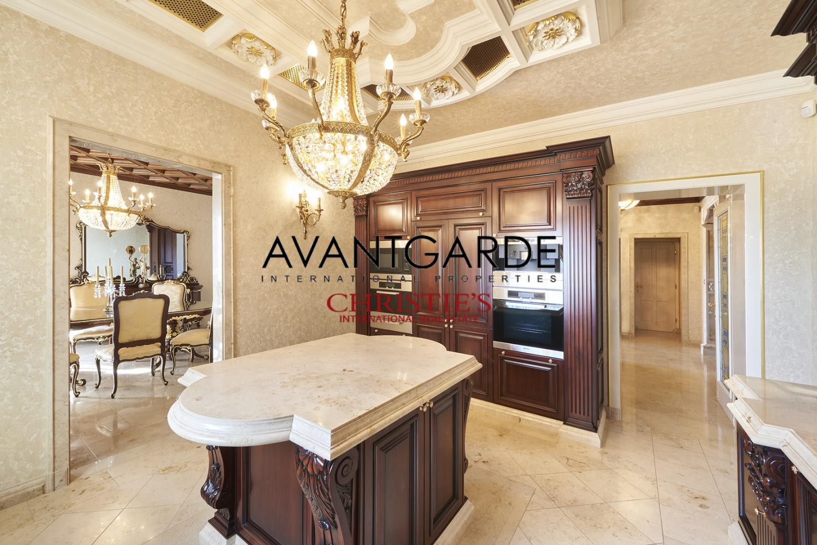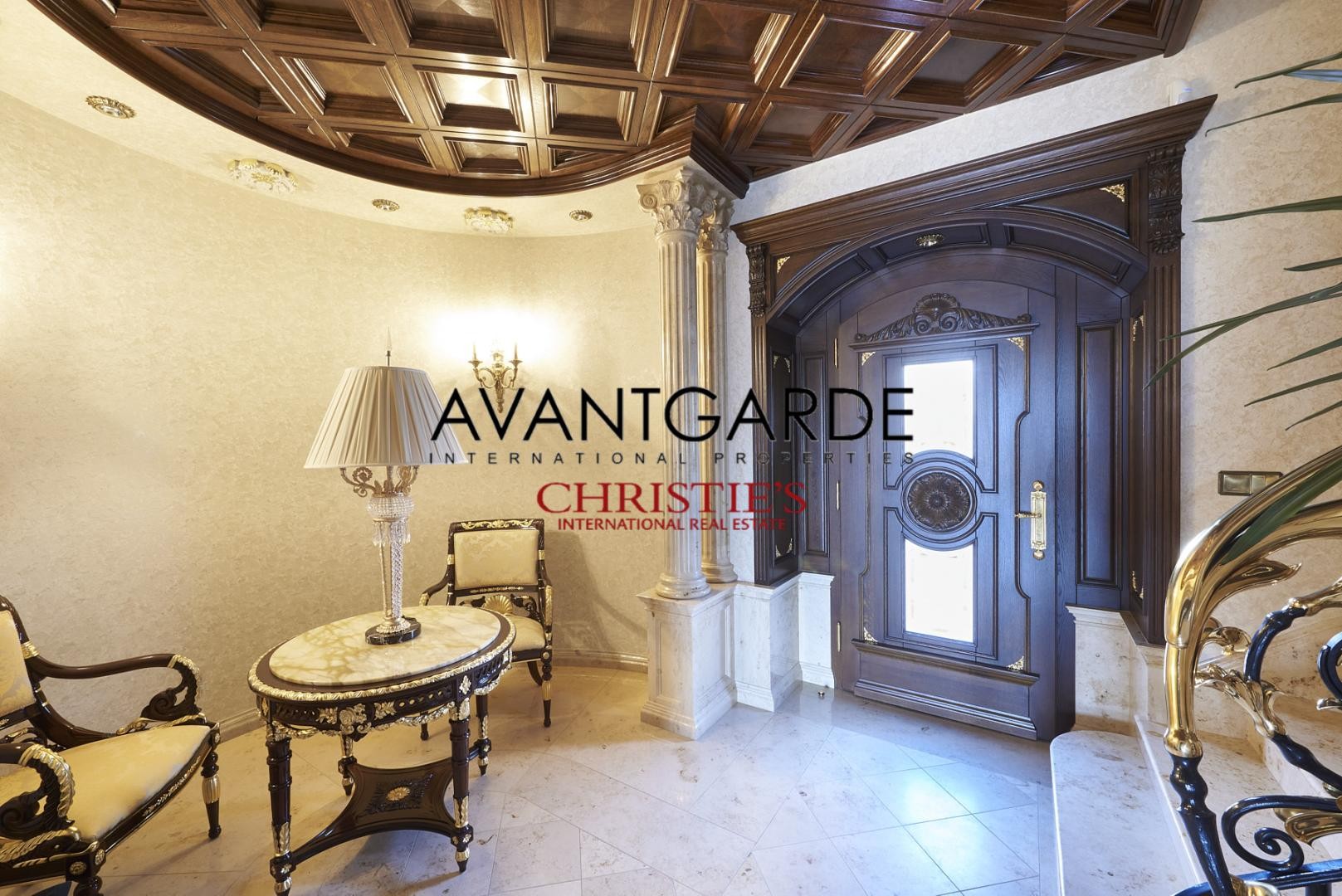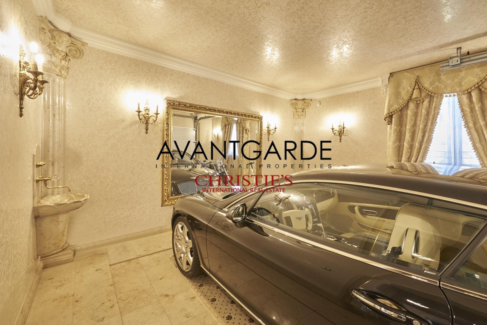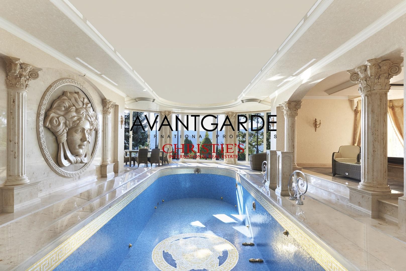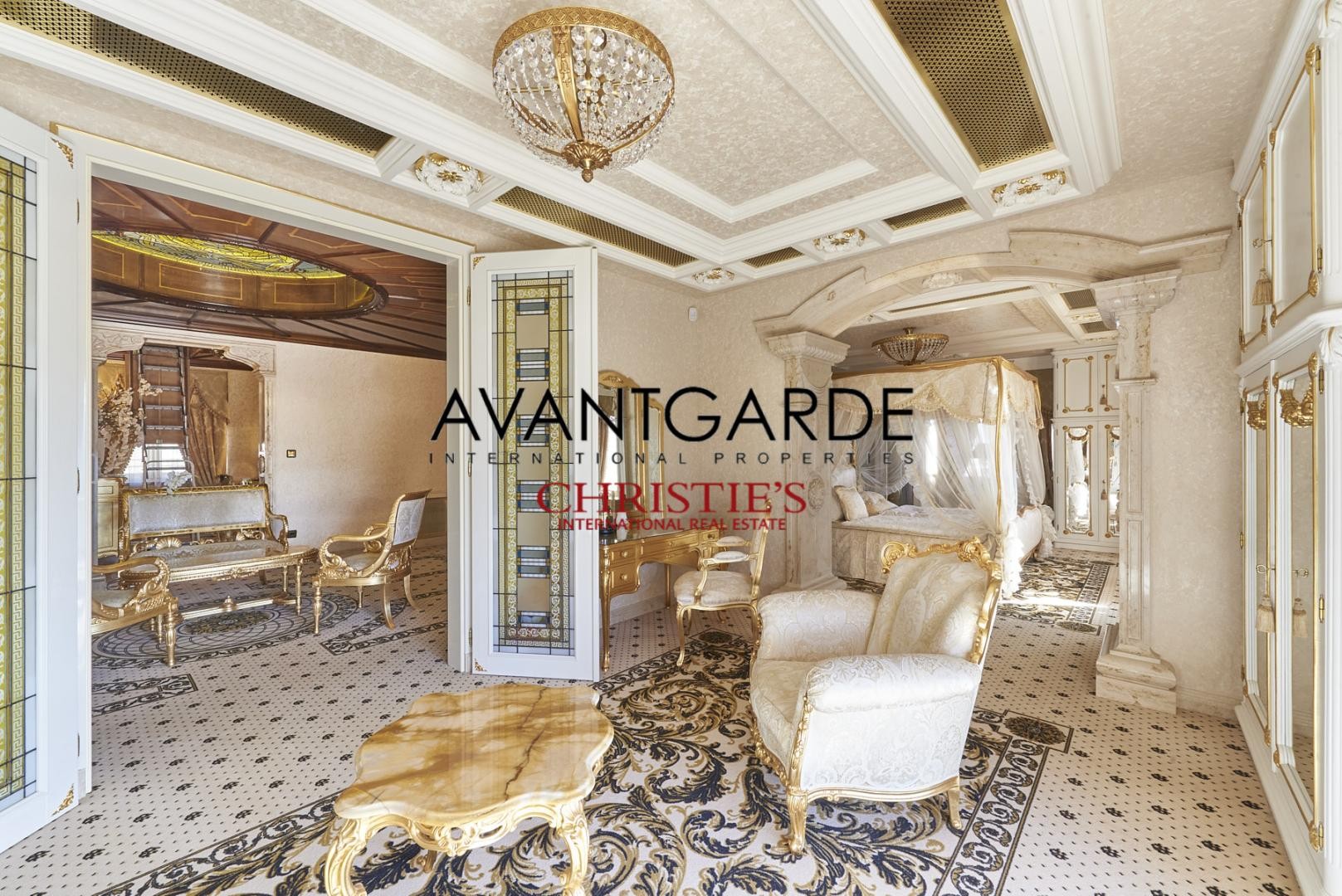 The entire villa impresses with exceptional stucco, glass mosaic by Bisazza as well as hand-carved Corinthian columns made of Jura stone and has Mariner chandeliers, wall chandeliers, Swarovski crystal, Jado and Angello Capellini furniture.