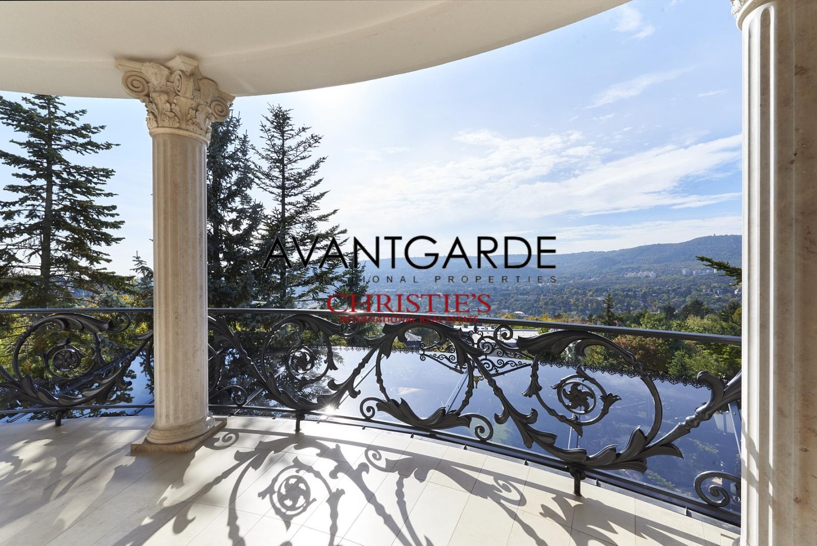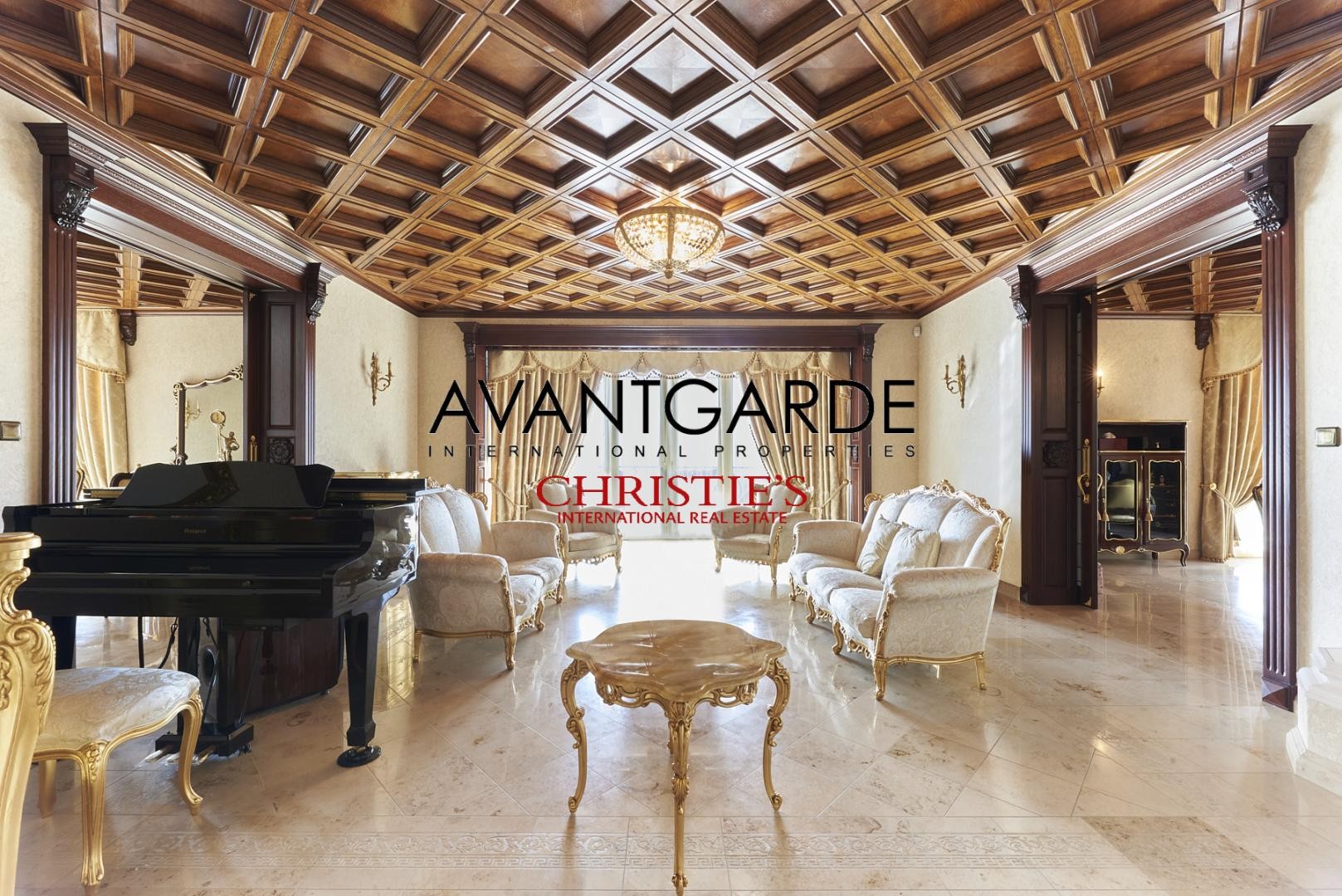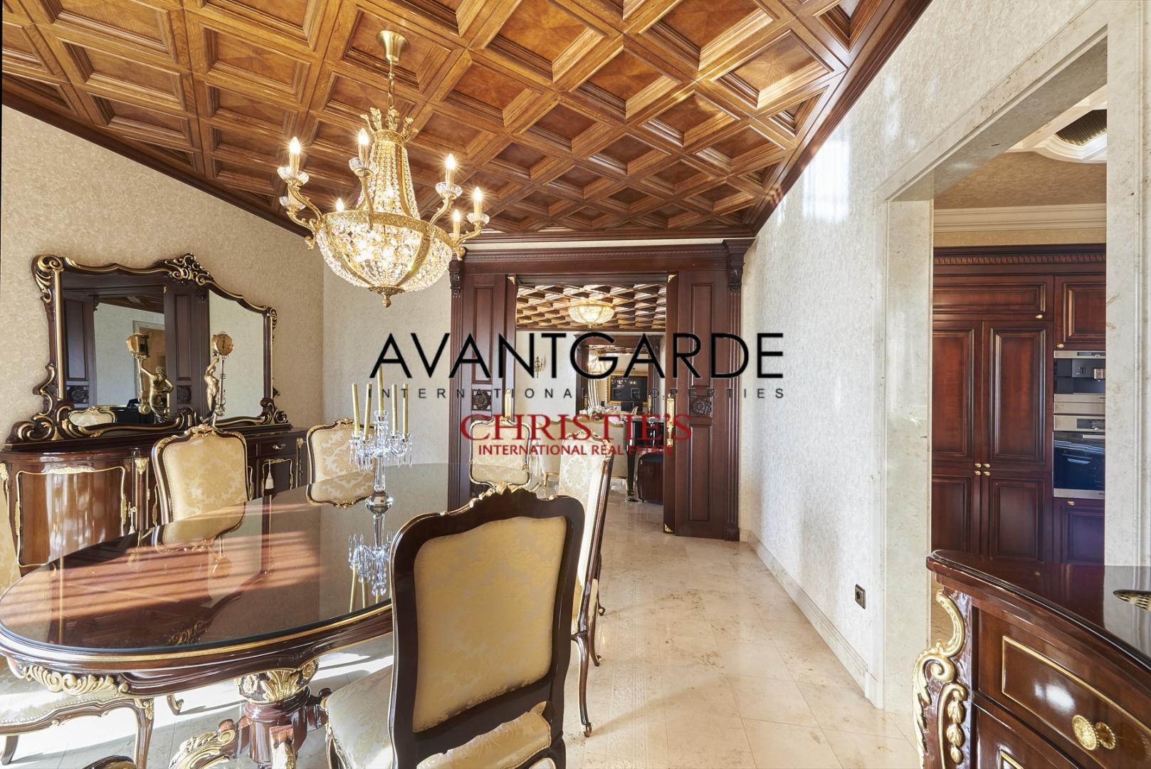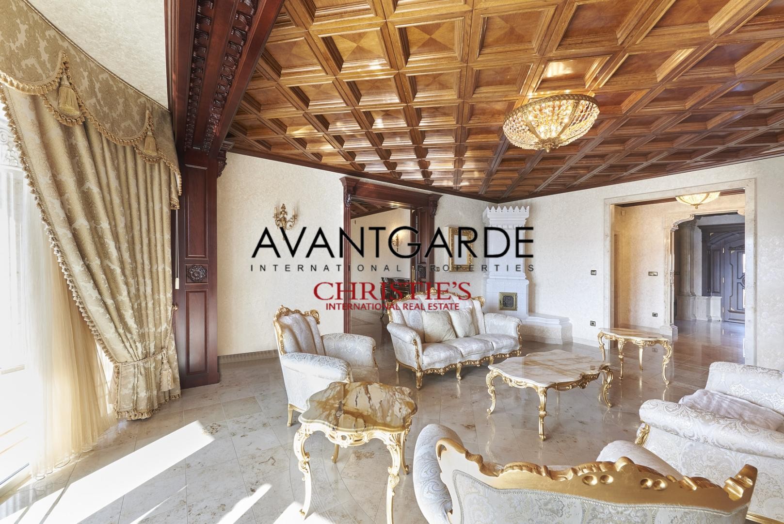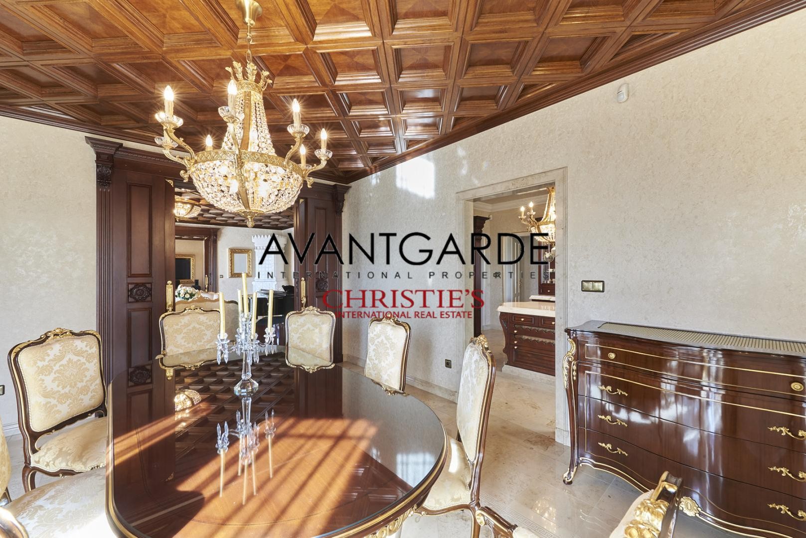 The entire villa impresses with exceptional stucco, glass mosaic by Bisazza as well as hand-carved Corinthian columns made of Jura stone and has Mariner chandeliers, wall chandeliers, Swarovski crystal, Jado and Angello Capellini furniture.