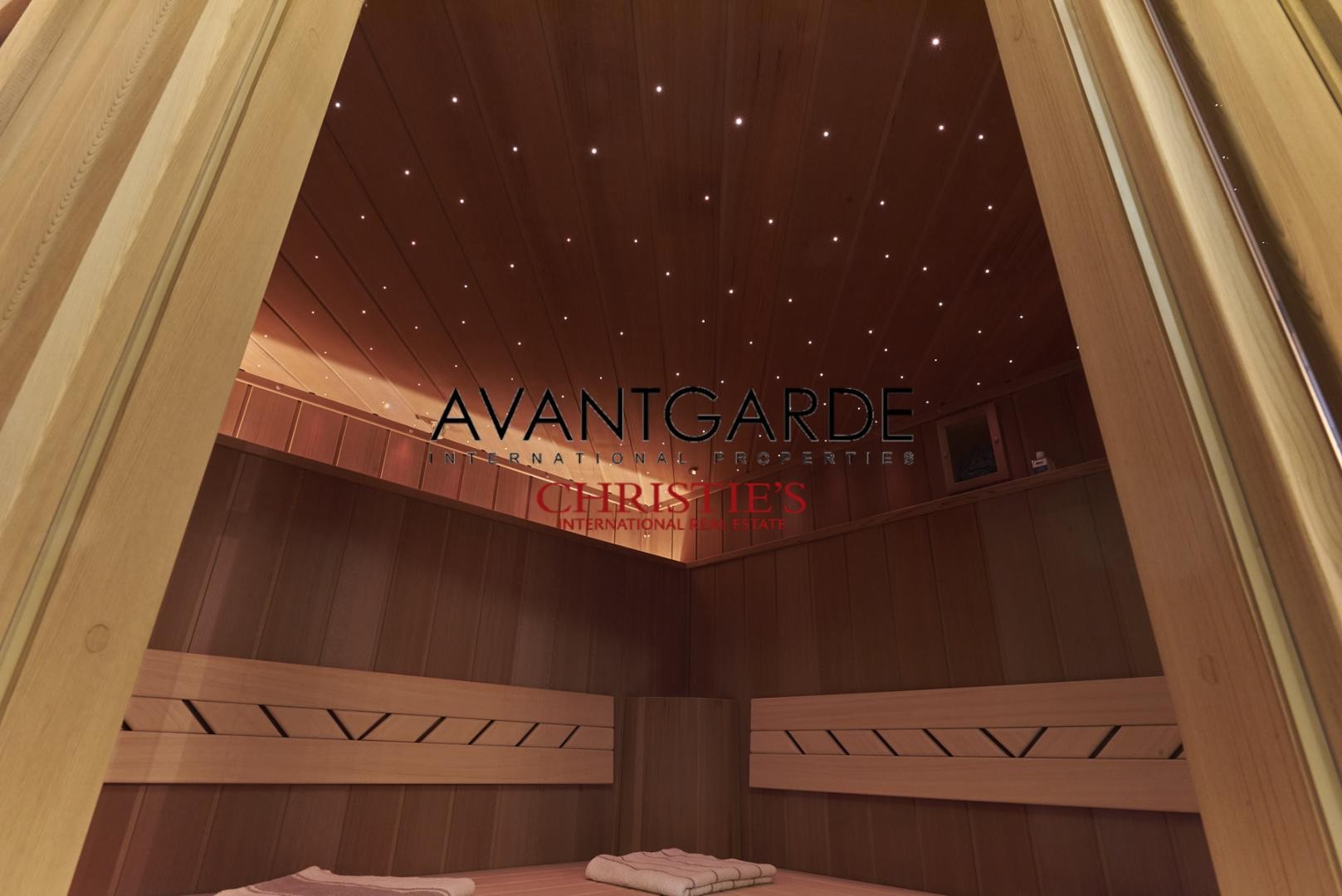 An elegant staircase decorated with yellow gold leads to the bedroom level. On this level are three spacious bedroom suites with dressing rooms as well as en-suite bathrooms fitted with specially handcrafted porcelain sanitary ware, three types of gilding decorated with mother-of-pearl painting and Jado Swan fittings.