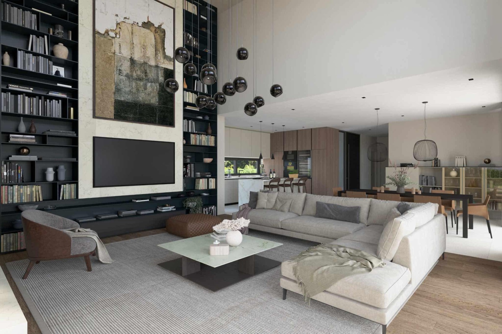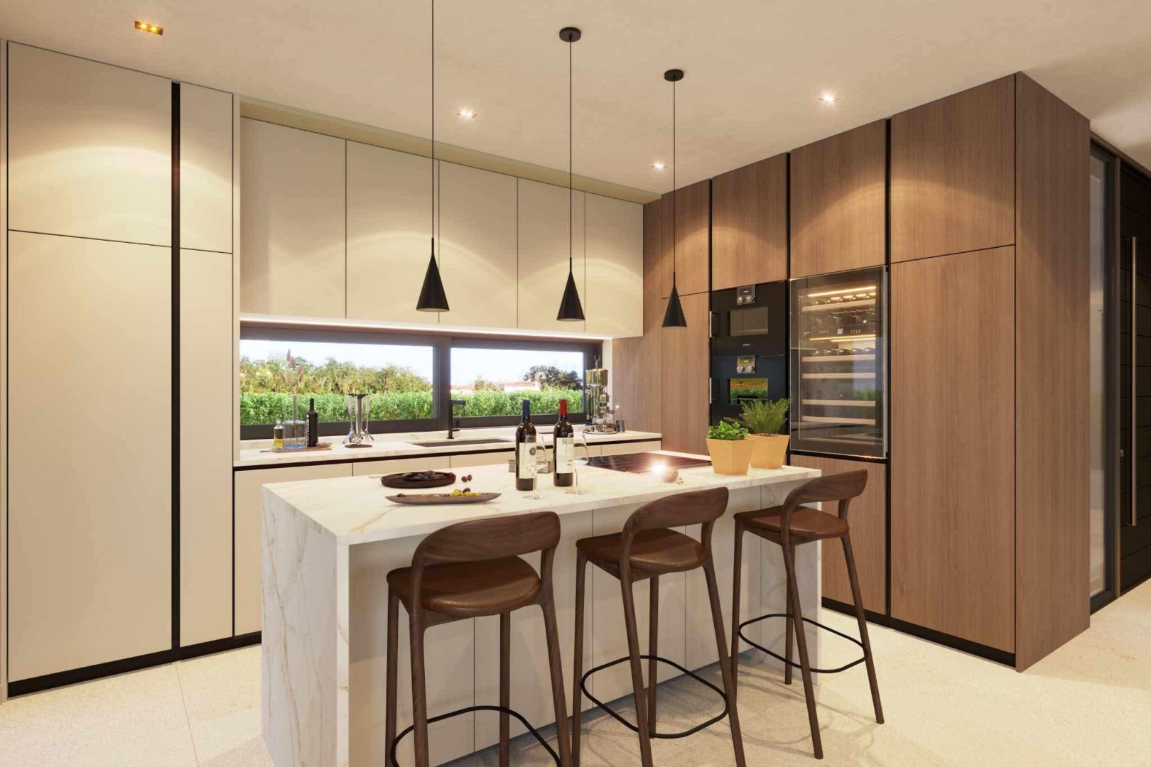 On the ground floor, you´ll find a spacious living room, whose open-plan design creates a light-filled and inviting ambiance. The living area flows seamlessly into the modern, fully equipped kitchen, ideal for entertaining and culinary experiences. The ground floor also features a bedroom with a private dressing room and en-suite bathroom—a perfect retreat for guests or as a ground-floor master bedroom.