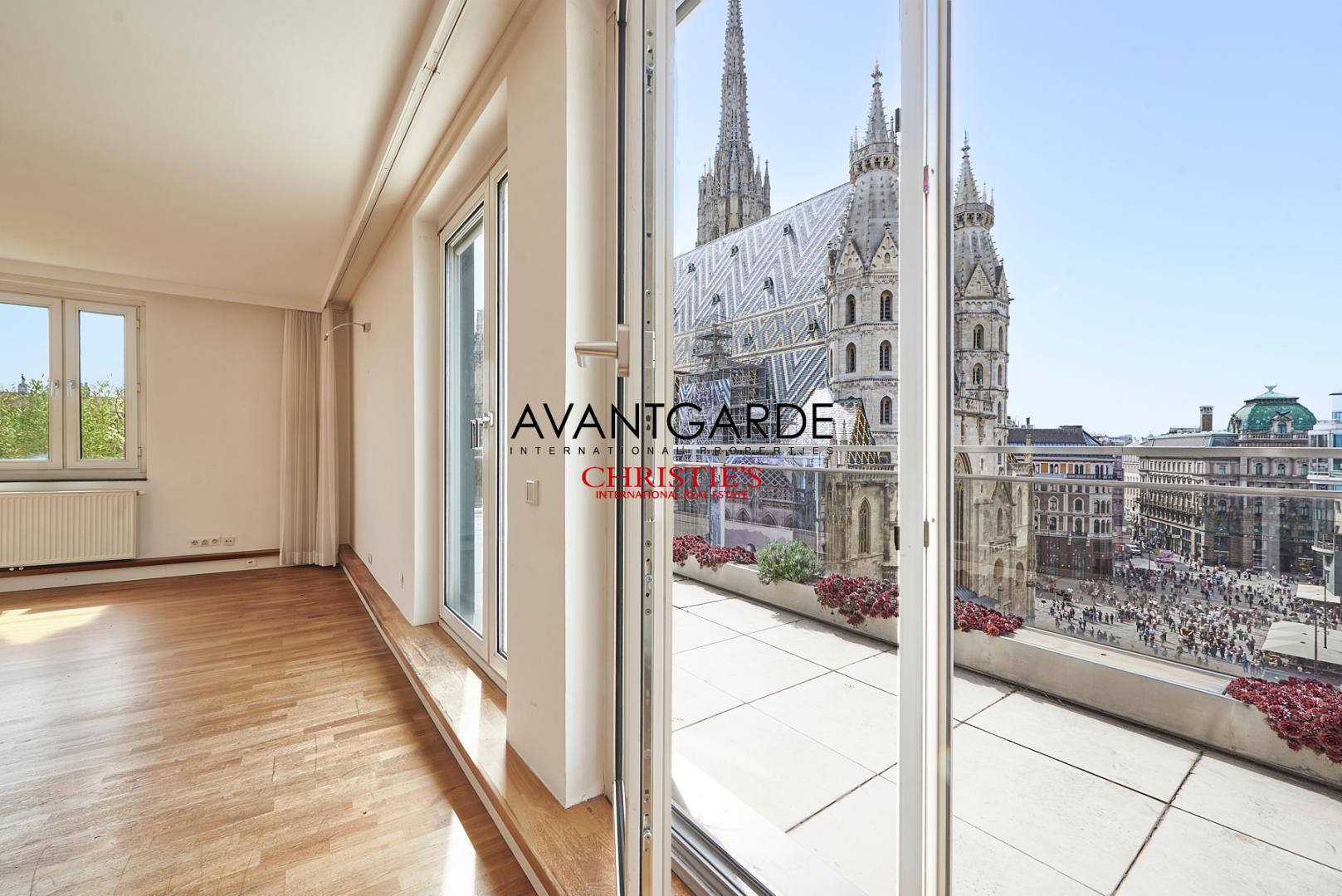 Dieses Apartment befindet sich in Triple- A Lage Wiens und bietet einen exzellenten Blick auf majestätischen Stephansdom. Die komfortable Wohnfläche von etwa 168 m² wird durch eine umrahmte Terrasse von insgesamt 70 m² ergänzt.