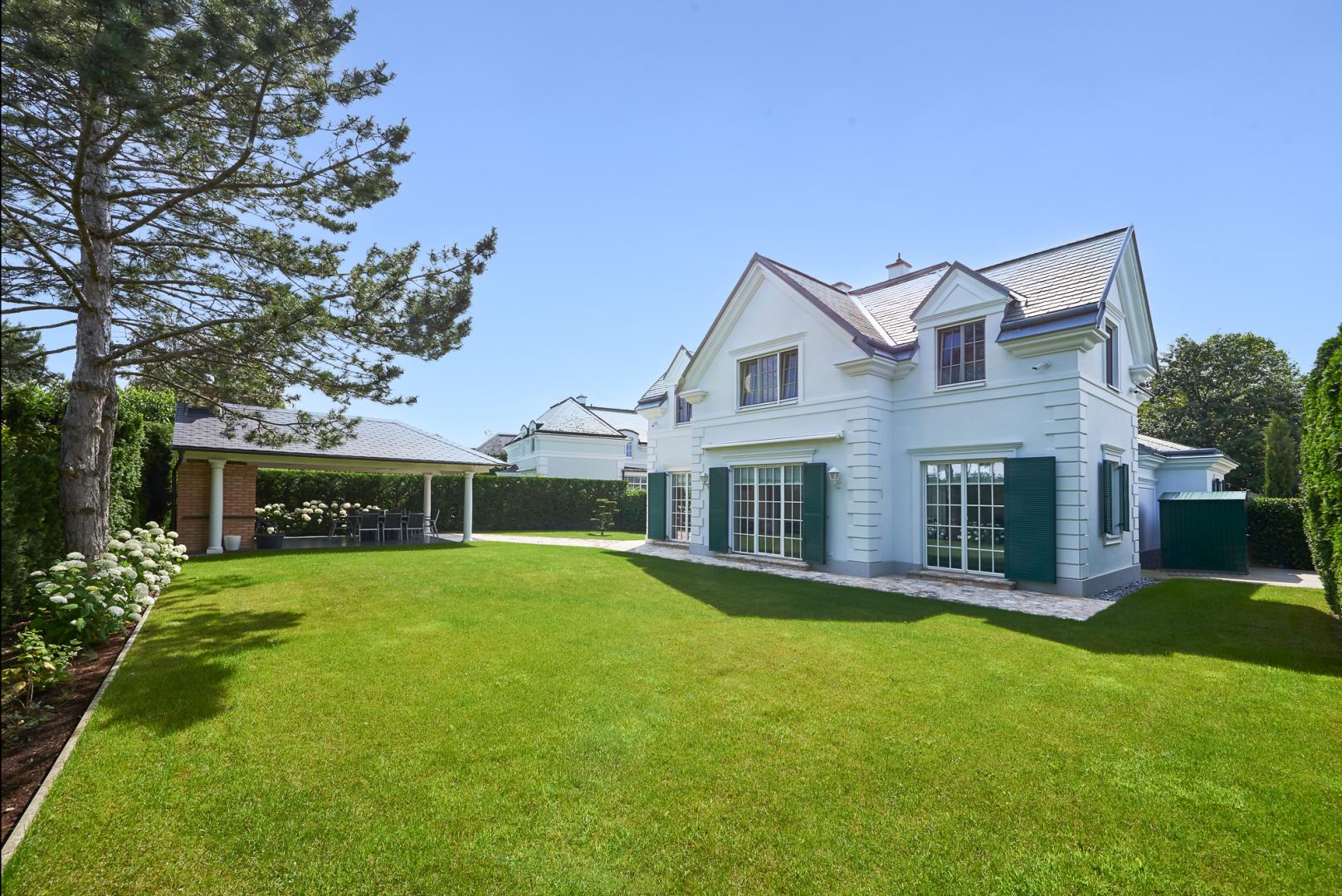Im Erdgeschoss erwartet Sie ein offener Wohnraum, der perfekt zum Empfangen von Gästen und für geselliges Beisammensein geeignet ist. Die raumhohen Fensterflächen lassen viel Tageslicht herein und schaffen eine helle und einladende Atmosphäre. Der Zugang zum Garten ermöglicht es den Bewohnern, die Natur zu genießen und die frische Luft zu atmen. Die moderne Küche ist an den Wohnraum angeschlossen. Ein Gäste Bad und ein offener Vorraum mit direktem Zugang zu einer Gäste Einheit runden das Raumkonzept ab.