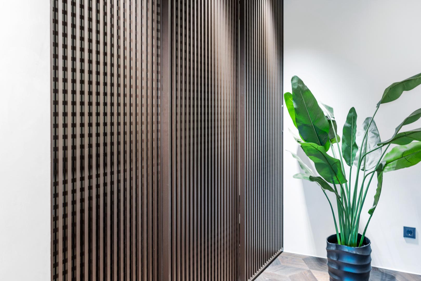• Ein großzügiger Schrankbereich mit stilvollen Kästen von Rimadesio sorgt für ausreichend Stauraum und bringt Ordnung in Ihr Zuhause.