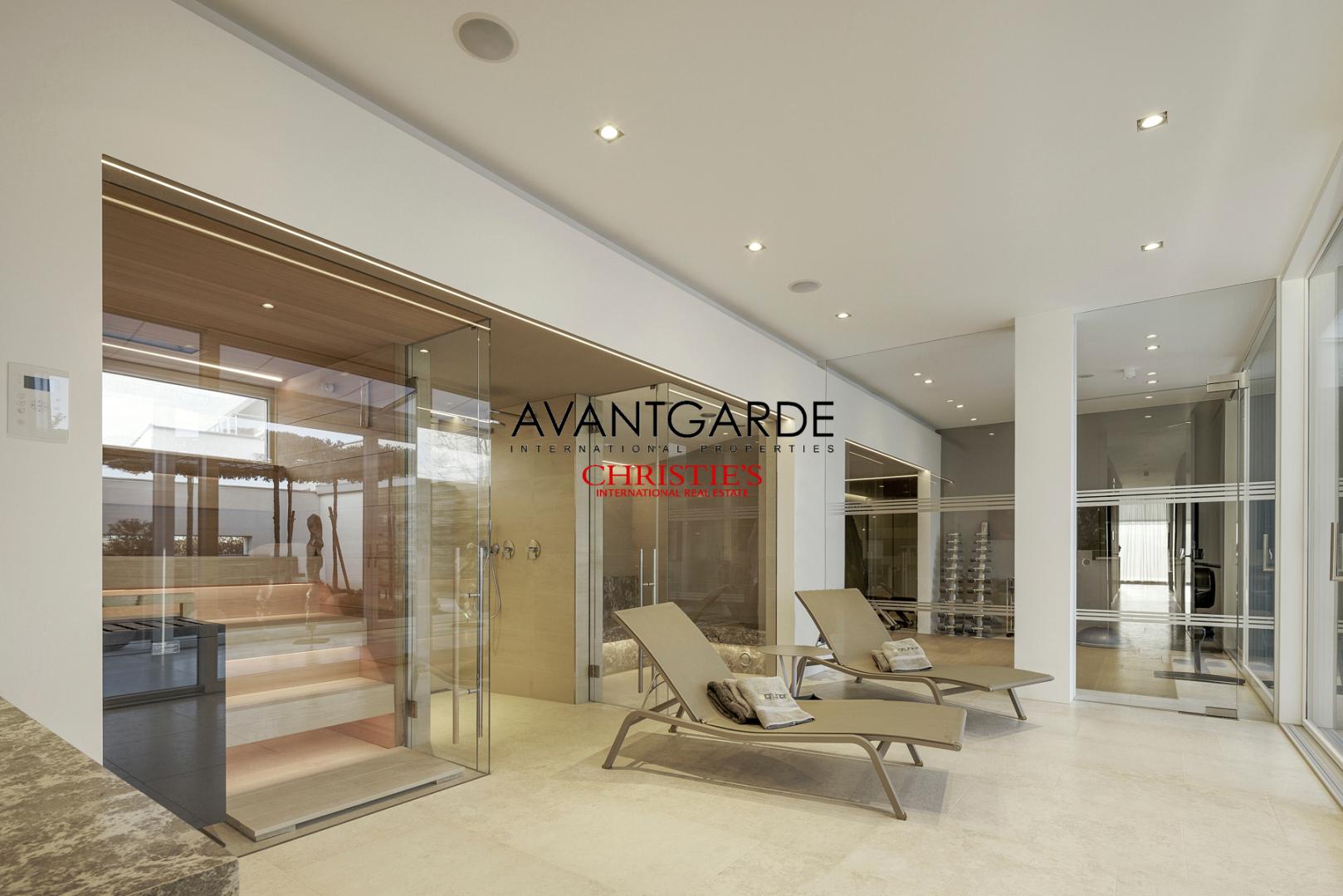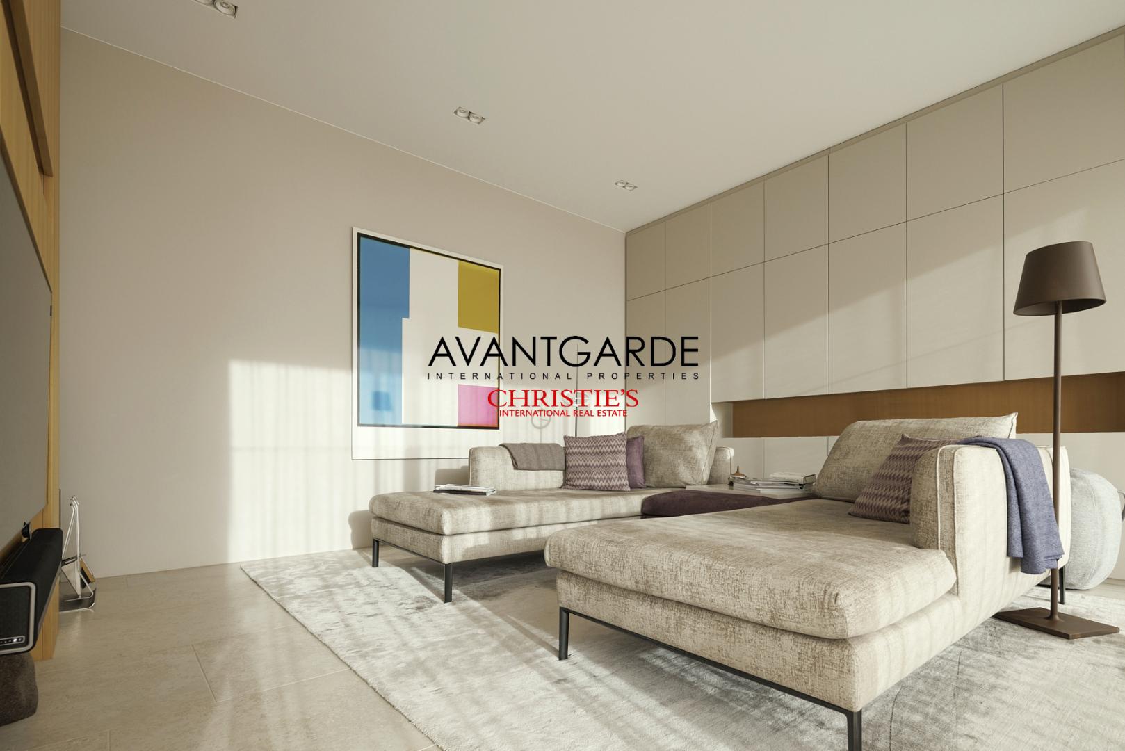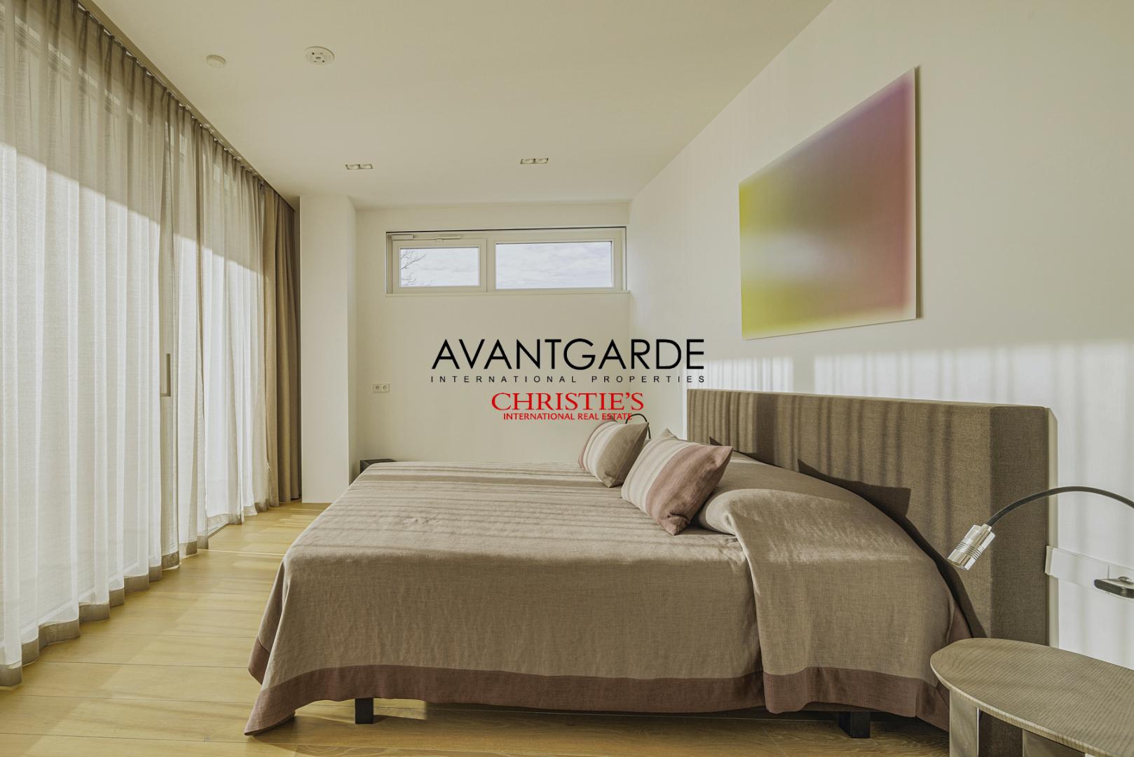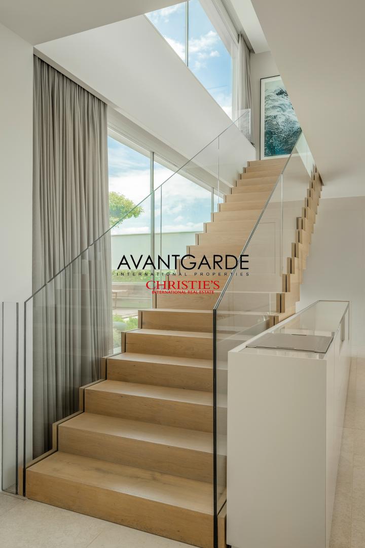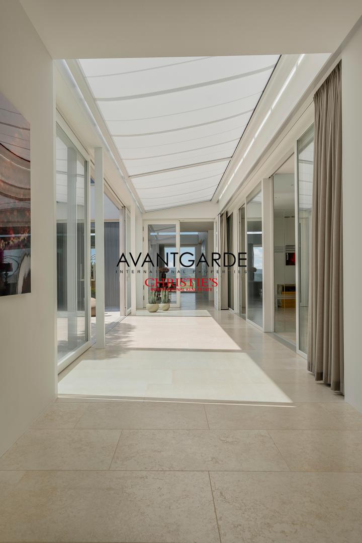 Der Hauptwohnbereich mit einer Raumhöhe von 6 m öffnet sich zur Galerie und zum zentralen Atrium – ein Innenhofgarten mit Wasserbecken und Sitzbereich, der als grüne Oase, Raum für Kunstwerke oder Raum für gesellschaftliche Anlässe fungiert.
