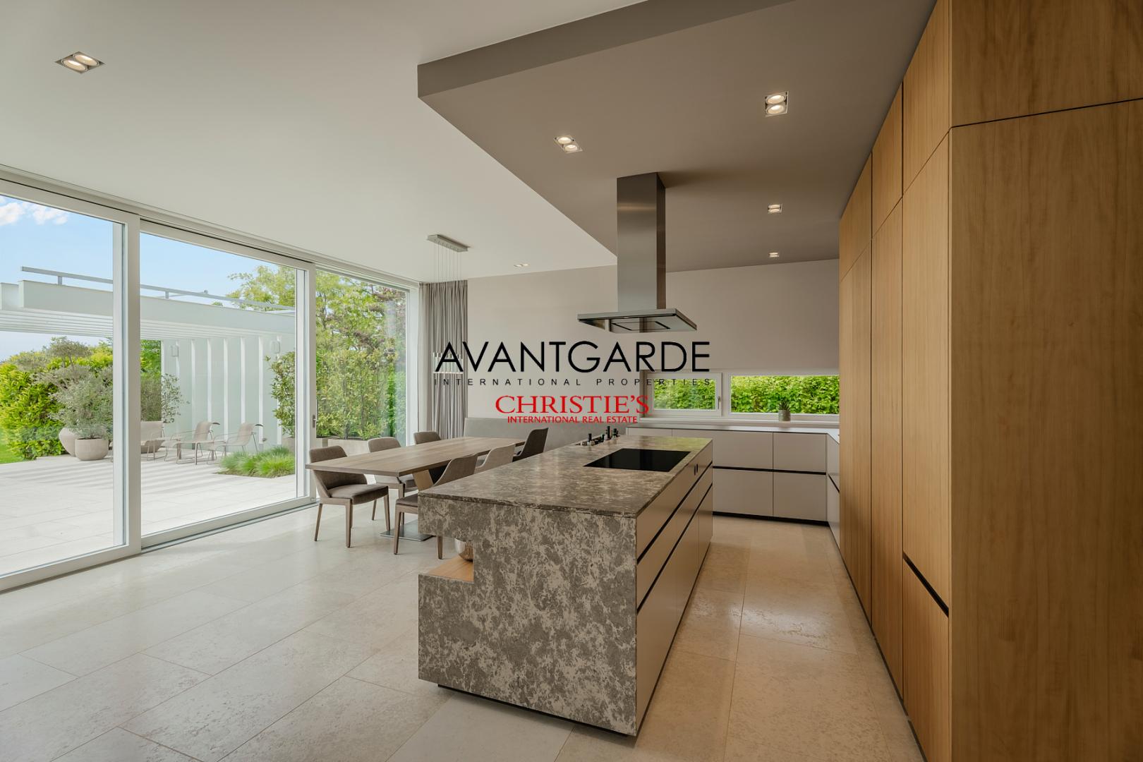 Die offene Küche stammt von Ladenstein, ist mit Gaggenau-Geräten ausgestattet und hat eine separate versteckte Wirtschaftsküche samt weiteren Geräten.