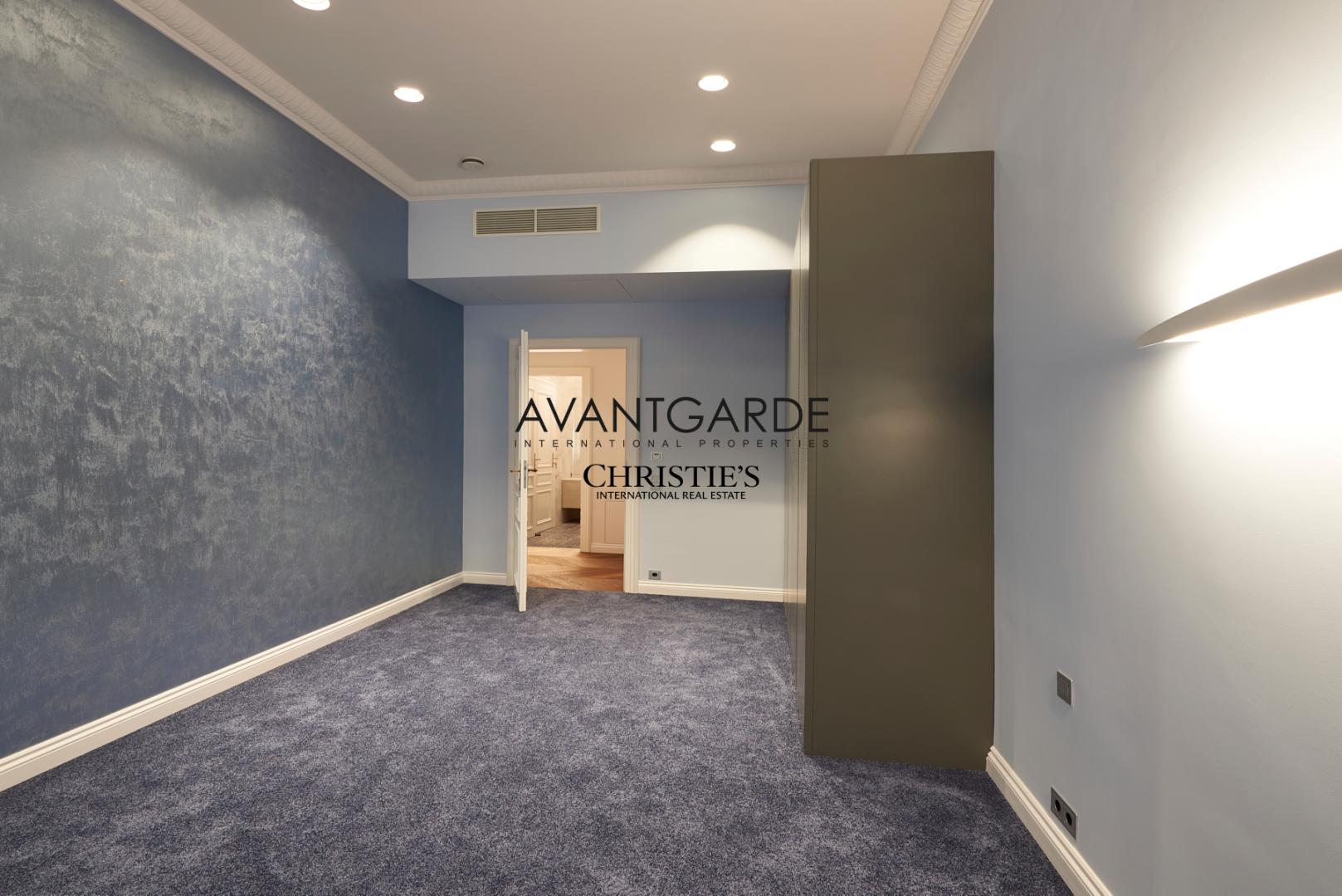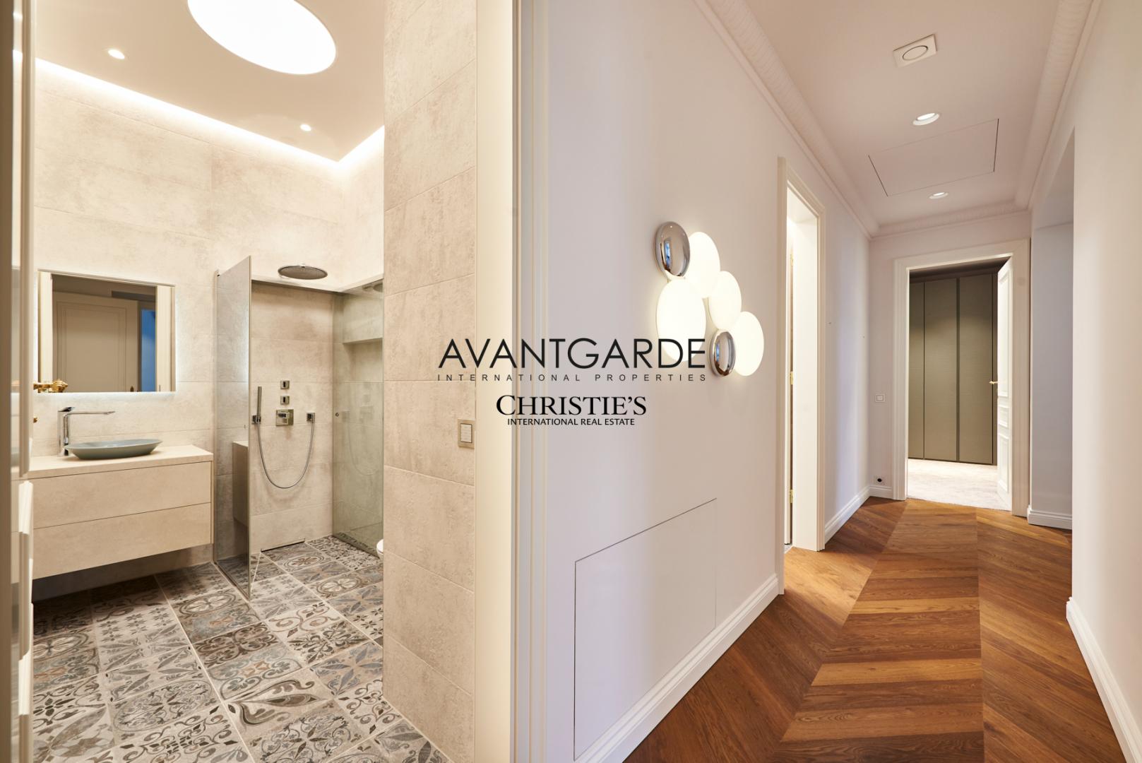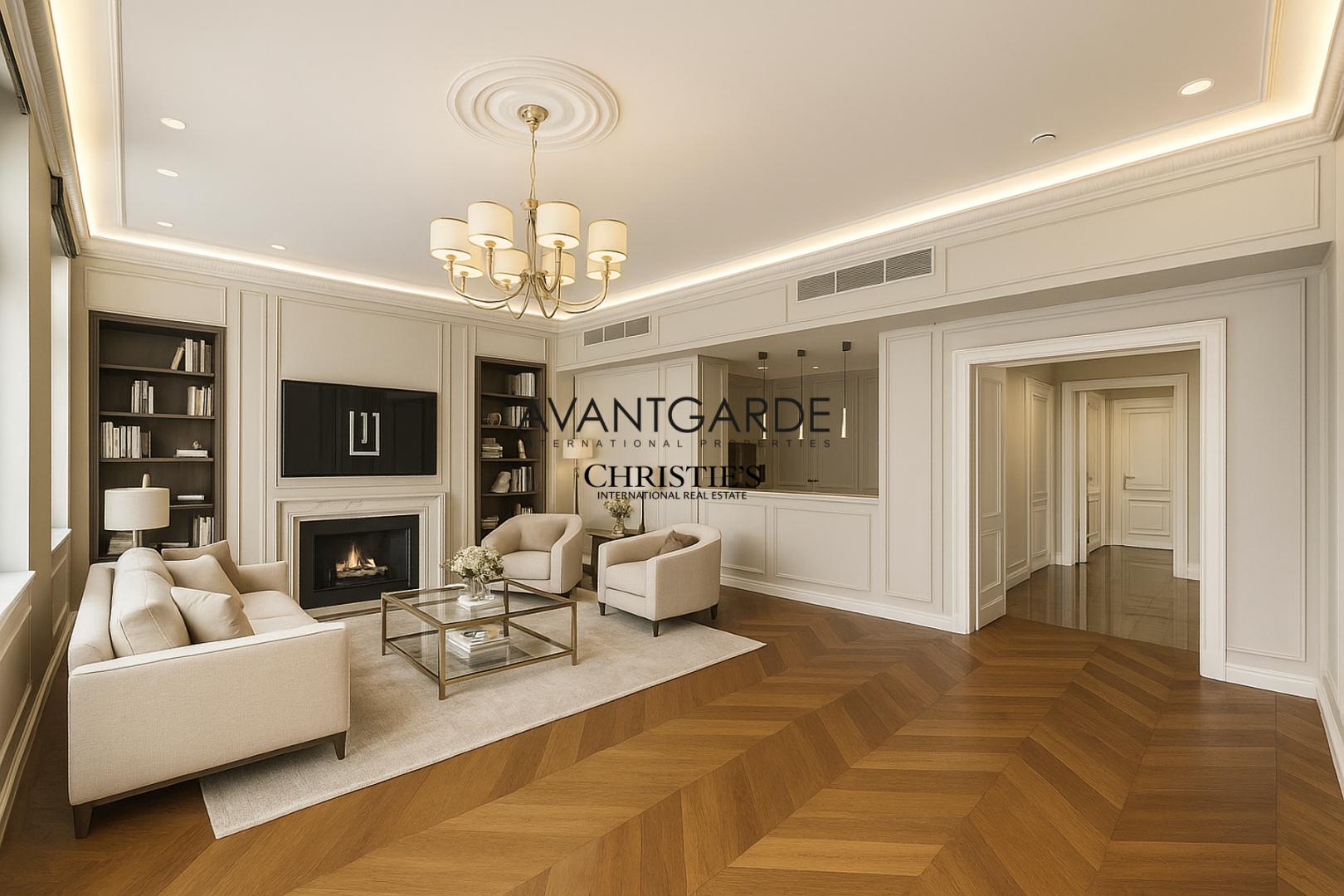 Das luxuriöse Apartment besticht durch eine großzügige und durchdachte Raumaufteilung. Durch ein elegantes Foyer mit integrierter Garderobe gelangen Sie in den repräsentativen Wohnsalon, der durch einen offenen Kamin Wärme und Gemütlichkeit ausstrahlt. Eine stilvolle Bar verbindet diesen Bereich nahtlos mit der voll ausgestatteten Küche und dem angrenzenden Wirtschaftsraum – der perfekte Ort für gesellige Abende und gemeinsames Kochen. Ein separater Flur führt zu den privaten Schlafräumen, die Rückzugsorte der Ruhe und Erholung bieten. Der Masterbereich umfasst ein geräumiges Schlafzimmer, einen angrenzenden Schrankraum und ein großzügiges Badezimmer. Zusätzlich stehen zwei weitere Schlafzimmer zur Verfügung, die jeweils über ein eigenes, elegantes Bad verfügen.