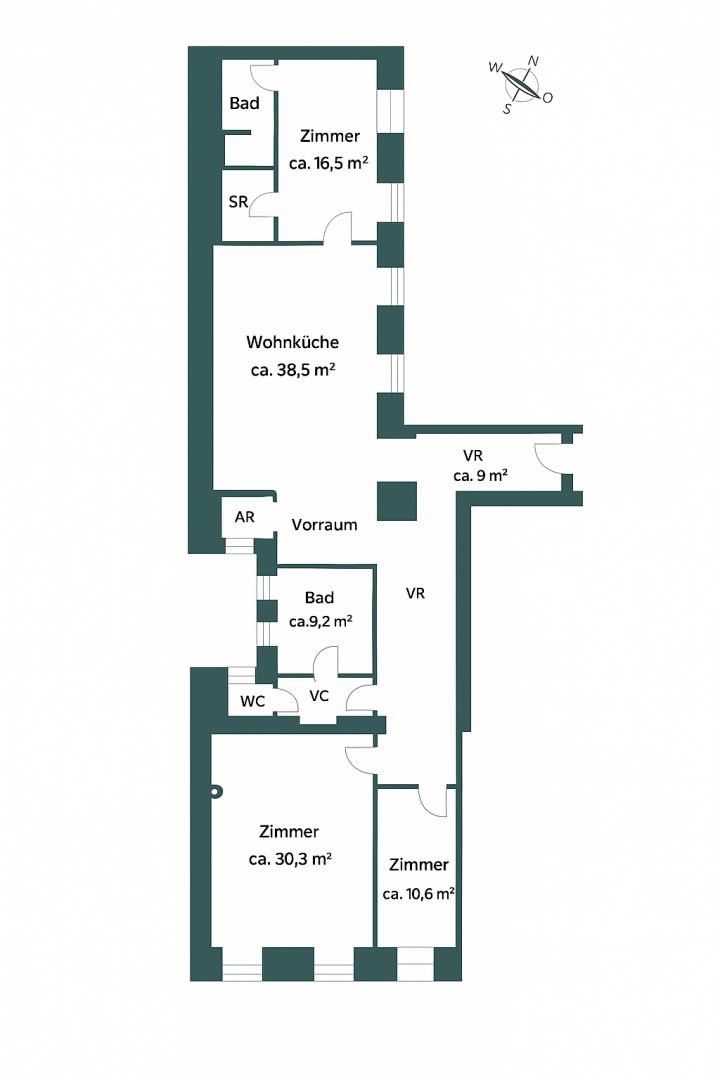 Zwei stilvoll ausgestattete Bäder sowie ein separates WC sorgen für zusätzlichen Komfort und machen die Wohnung ideal für Familien, Paare oder anspruchsvolle Singles.