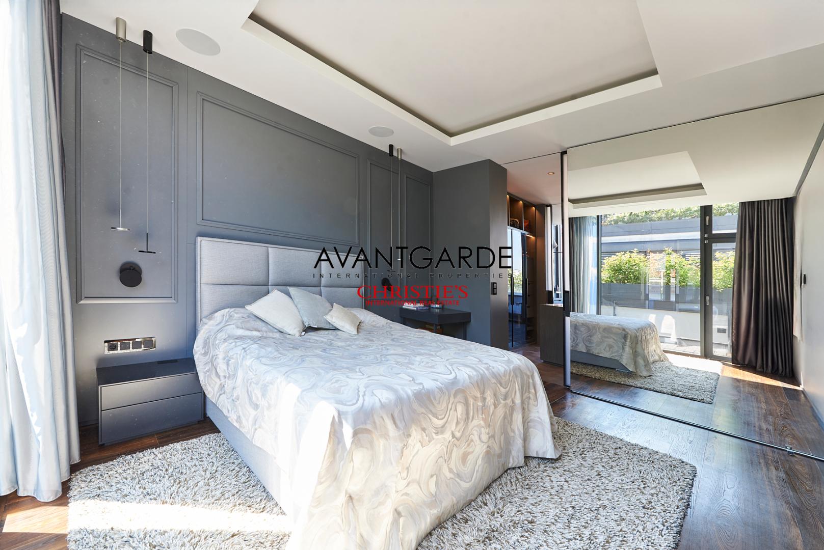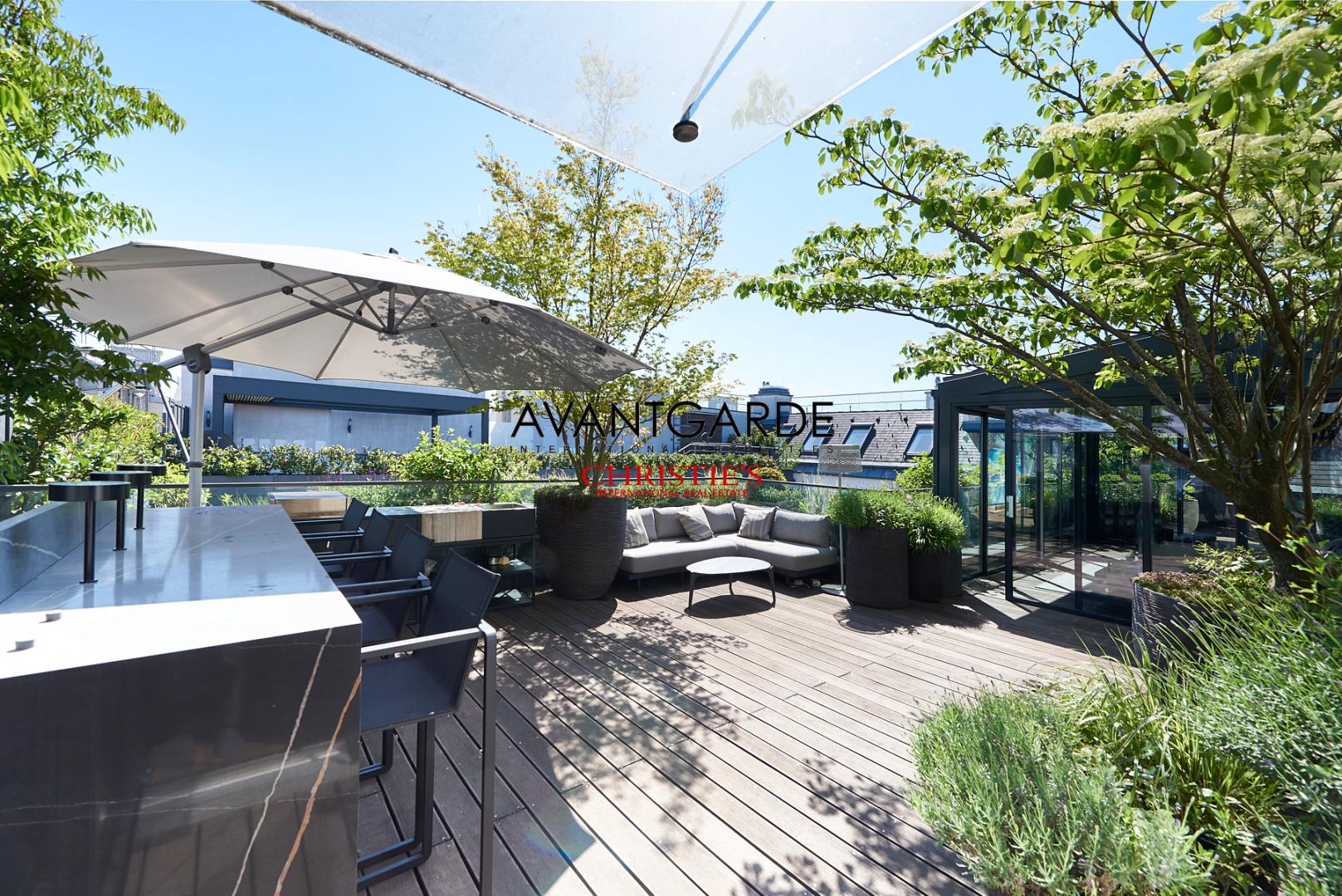 The rooftop landscape has been meticulously designed, combining luxurious outdoor living with striking aesthetics. A heated winter garden ensures year-round usability, while the spacious lounge area is furnished with exclusive pieces from Royal Botania. A fully equipped outdoor kitchen, a stylish bar area, and a large dining table for up to ten guests make this space the perfect setting for both relaxing and entertaining.