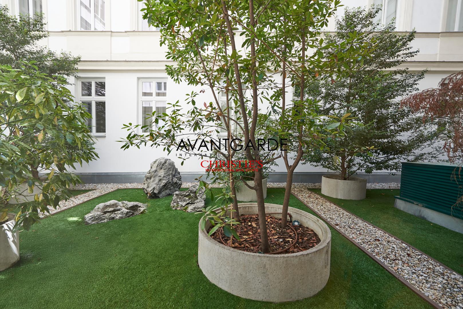 This unique living experience is completed by a comfortable garage parking space. The elegant entrance hall of the building and a charmingly landscaped inner courtyard enhance the sophisticated atmosphere of the entire property.