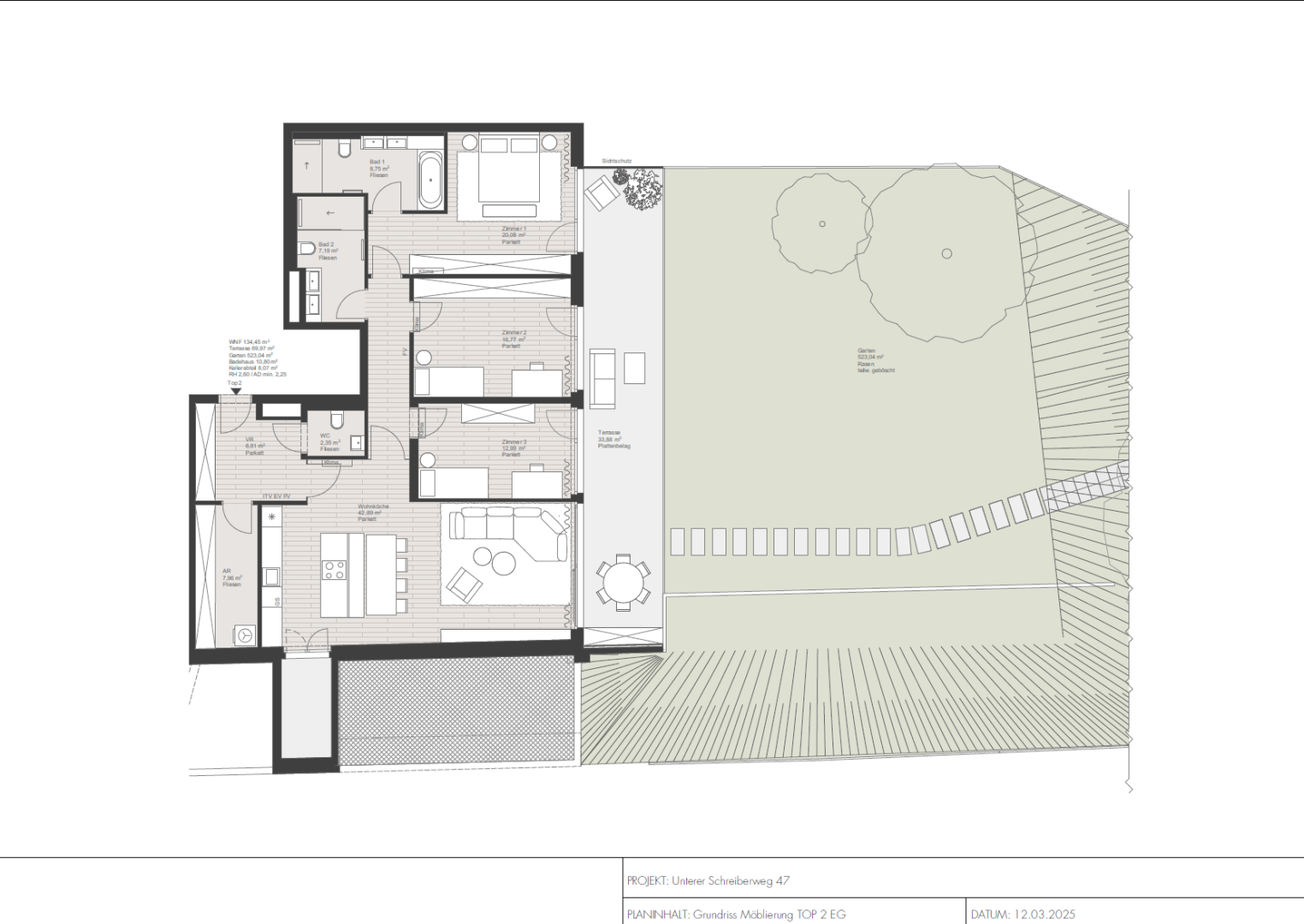 The spacious terrace is perfect for cozy summer evenings and relaxing hours in the open air.