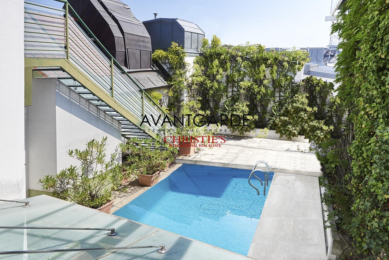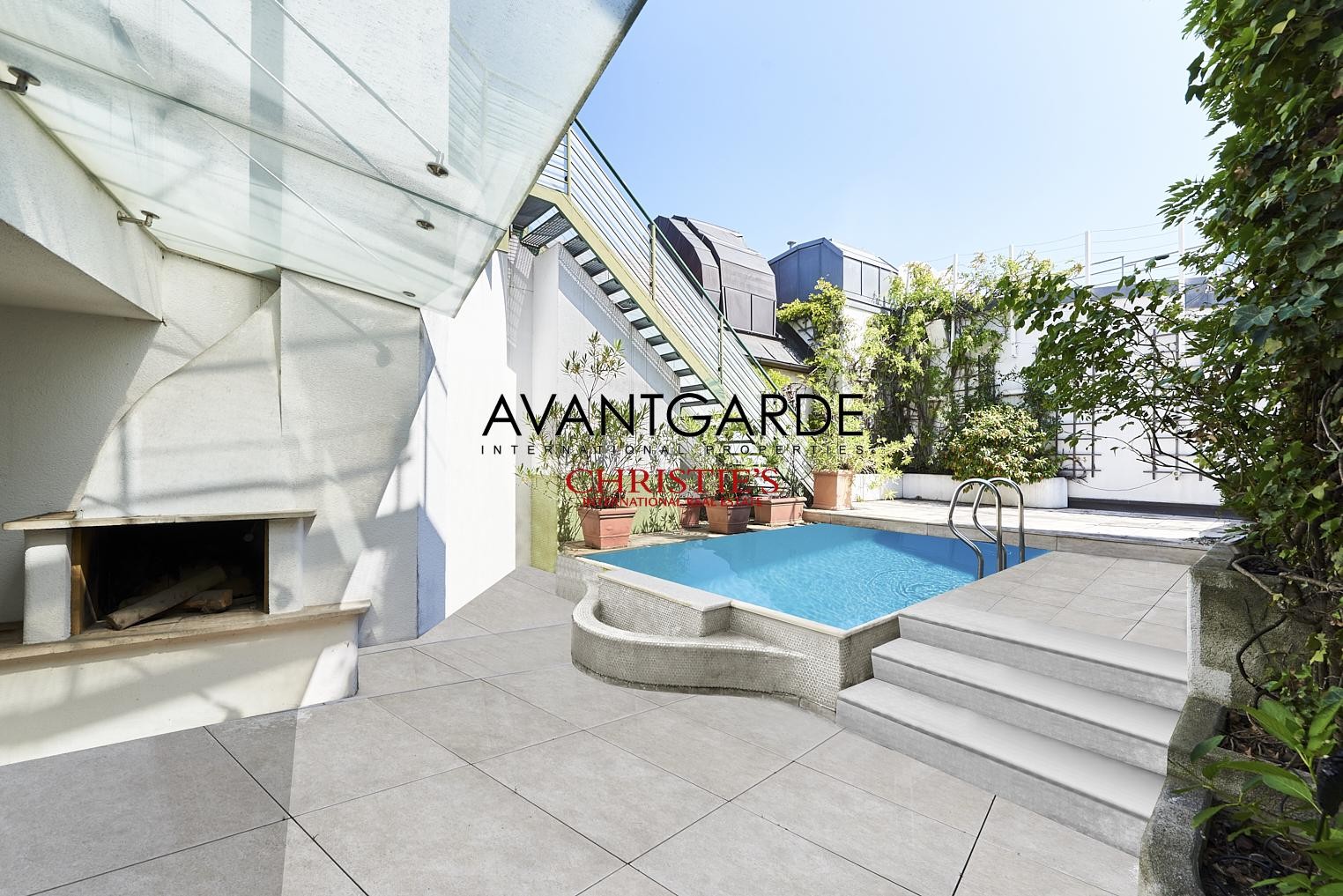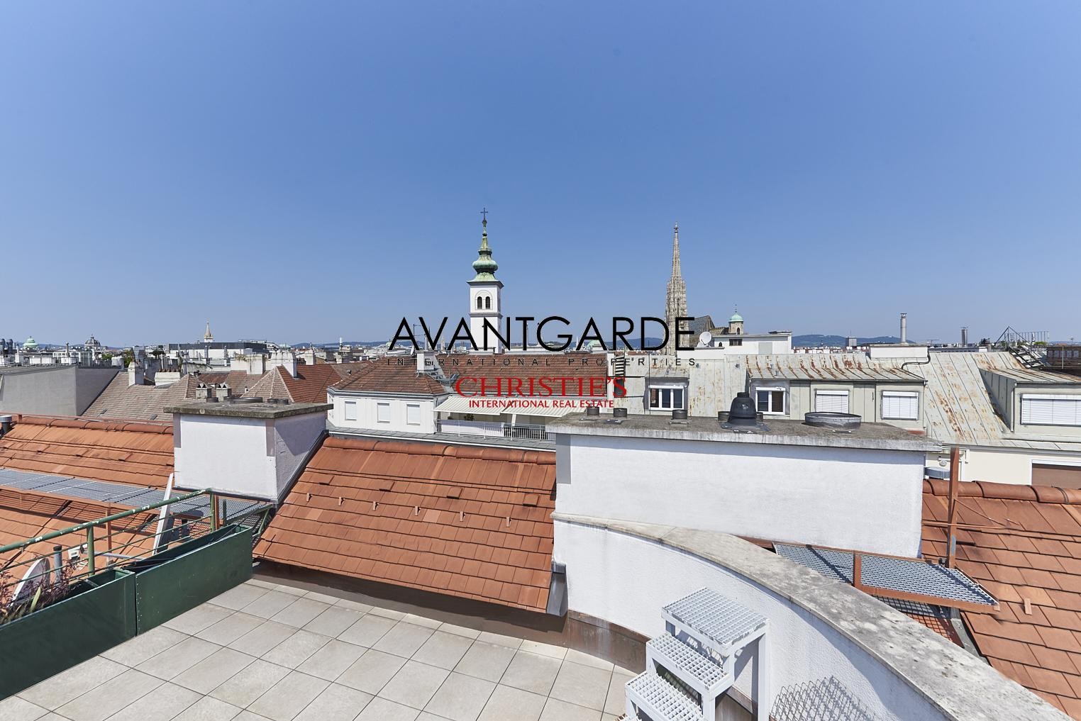 This exclusive two-story penthouse in Vienna´s coveted 1st district epitomizes luxury living at its finest. Upon entering the residence, you are greeted by a lush terrace with a private outdoor pool and fireplace — an absolute oasis of privacy and seclusion. A separate storage room directly adjoins the pool area for convenient storage. The rooftop terrace above offers breathtaking 360-degree views over Vienna´s majestic city center.