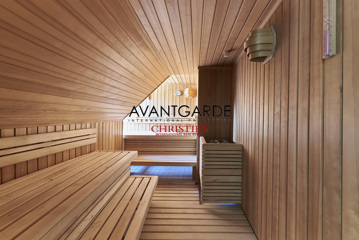 From the gallery level, you enjoy an impressive view over the elegantly designed living area with open fireplace. On this floor, you´ll also find a spacious sauna for approximately 6 people with shower and toilet, as well as a separate room for staff or guests.