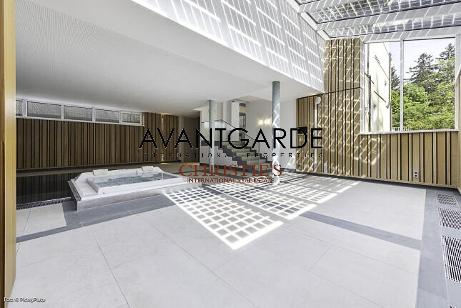 The living room on the ground floor with a terrace in front and direct access to the garden is one of the highlights of this special villa. The flat, south-west facing garden offers plenty of space for relaxation. Also the gallery in the DG is remarkable and could be used as a studio or home office. In the basement there is also a spacious SPA area, which allows the needed relaxation after a hard working day.
